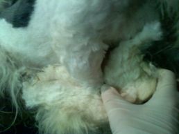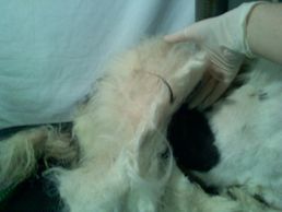 A mat is a tangle of hair or fur, which can be small or large, and can be found anywhere on a pet that has not been brushed and combed regularly (see "how often should I brush my pet" FAQ for prevention). When a mat is left on the pet, it collects more hair, dirt, skin oil, dander, static, etc. and grows and tightens, pulls at the skin, making the pet very uncomfortable, and will eventually be ripped away from the skin, sometimes taking the skin with it, if the pet gets the mat caught on something. The skin underneath the mat cannot breathe and will retain moisture and bacteria. Raw spots (hot spots) can form under mats. Abscessed wounds, fleas, mold, and maggots can also be hidden under mats....as can thorns and fishing hooks as I, myself, have found in pet hair. The matting process speeds up rapidly when the pet gets wet from a bath (see "can I bathe my pet between grooming" FAQ) or from being out in the rain and is left to "air dry" without being brushed and combed. A pet should be fully brushed AND combed over every inch of its body before it is allowed to get wet, and it needs to be hand-dried and brushed AND combed as it dries, to prevent mats from forming.
